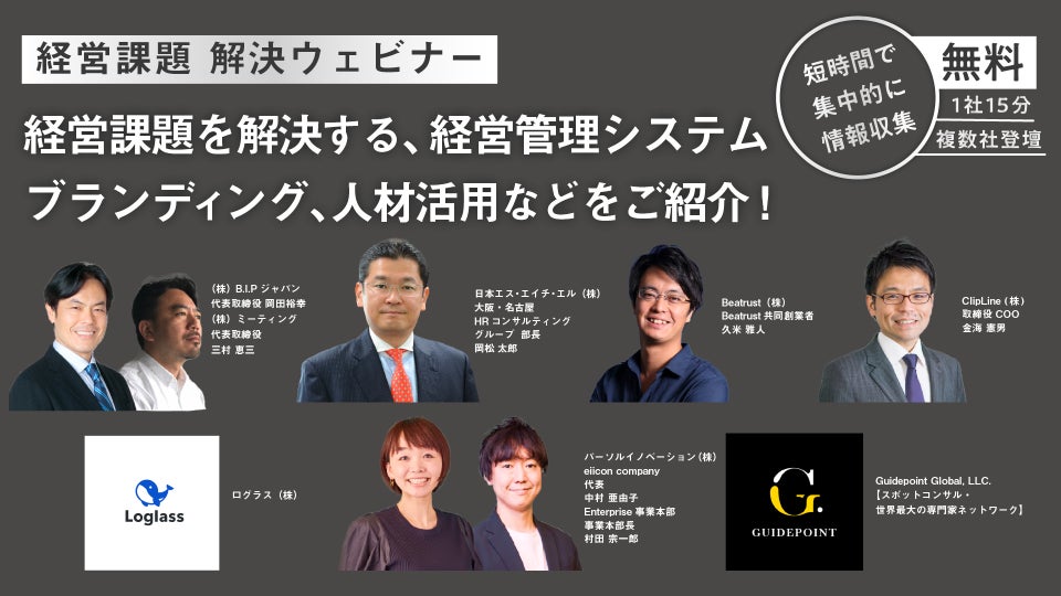 | 経営課題 解決ウェビナー「2023年、企業がオープンイノベーションを取り入れるべき理由」 日時:2023年2月1日(水)10:35~10:50(15分)※時間は前後の可能性がございます。 オンライン・無料 詳細・申込 https://www.bizcrew.jp/event/6163/module/booth/166107/105157 |